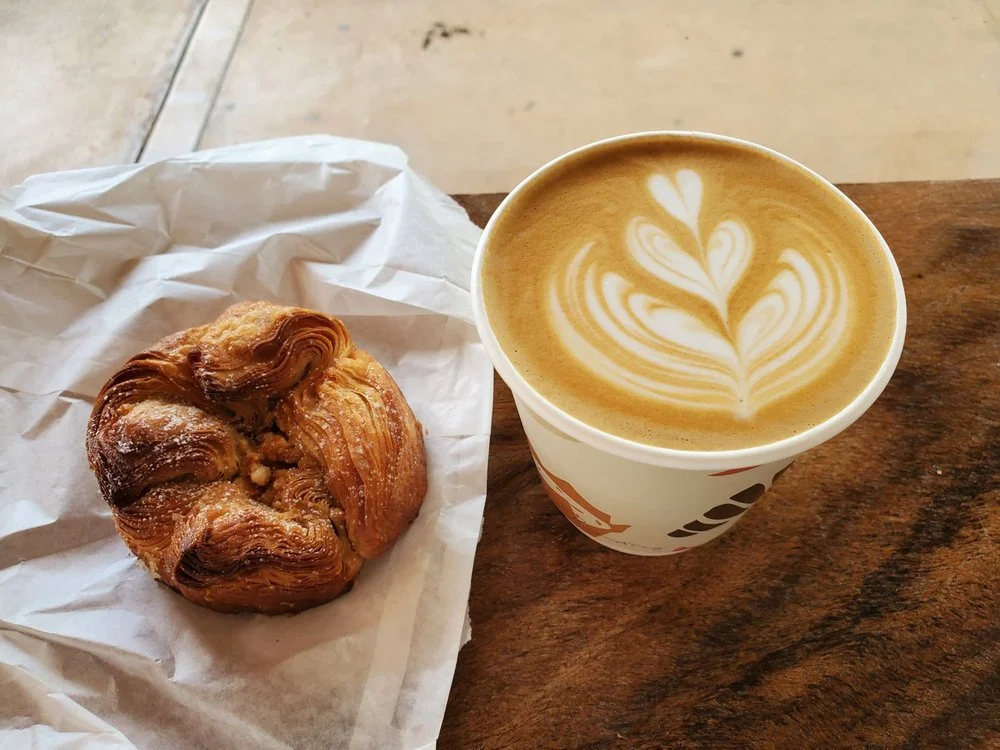 Cappuccino and kouign-amann pastry from Aloha Roastery in Lihue, Kauai