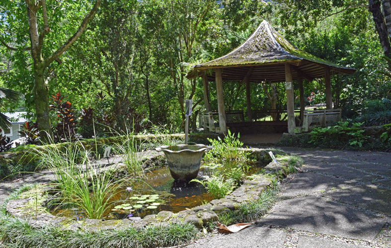 Visitors are asked to sign in at the Visitors Center, where they can pick up a map, visit the bathrooms, and check out the small-but-groovy gift shop. The downhill gardens include the Betty Ho Memorial Garden, featuring a collection of antique Chinese pots and colorful bromeliads, and the Young Memorial Garden, where a cool and shady gazebo awaits.